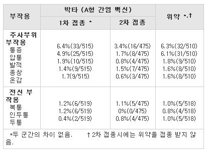 ¹× °¢°¢ 6, 12, 28°³¿ù ÈÄ Ãß°¡Á¢Á¾À» ½Ç½ÃÇϰí Á¢Á¾ ÈÄ 5ÀÏ µ¿¾È ¹ß¿, ±¹¼ÒºÎÀÛ¿ë,