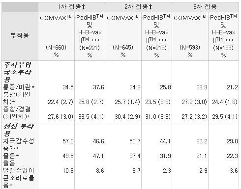 *** PedHIB? / H-B-vax II? ±ºÀÇ ÁÖ»çºÎÀ§ ±¹¼Ò ºÎÀÛ¿ëÀº °¢°¢ÀÇ