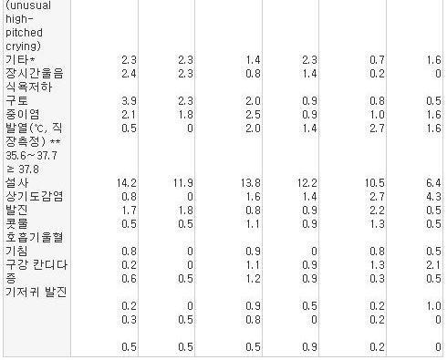 Ç¥ 1. ÀÌ ¹é½Å(COMVAX ?)À» 3ȸ Á¢Á¾ÇÏ¿´À» ¶§ Á¢Á¾ ÈÄ 5ÀÏ À̳»¿¡ ¹ß»ýÇÑ